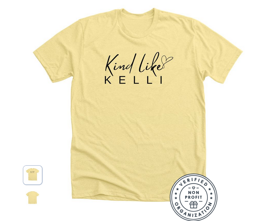 All funds raised from the purchase of Kind Like Kelli shirts benefit Kelli’s Kegs ‘n Eggs, a nonprofit focused on supporting those diagnosed with Brain Cancer.